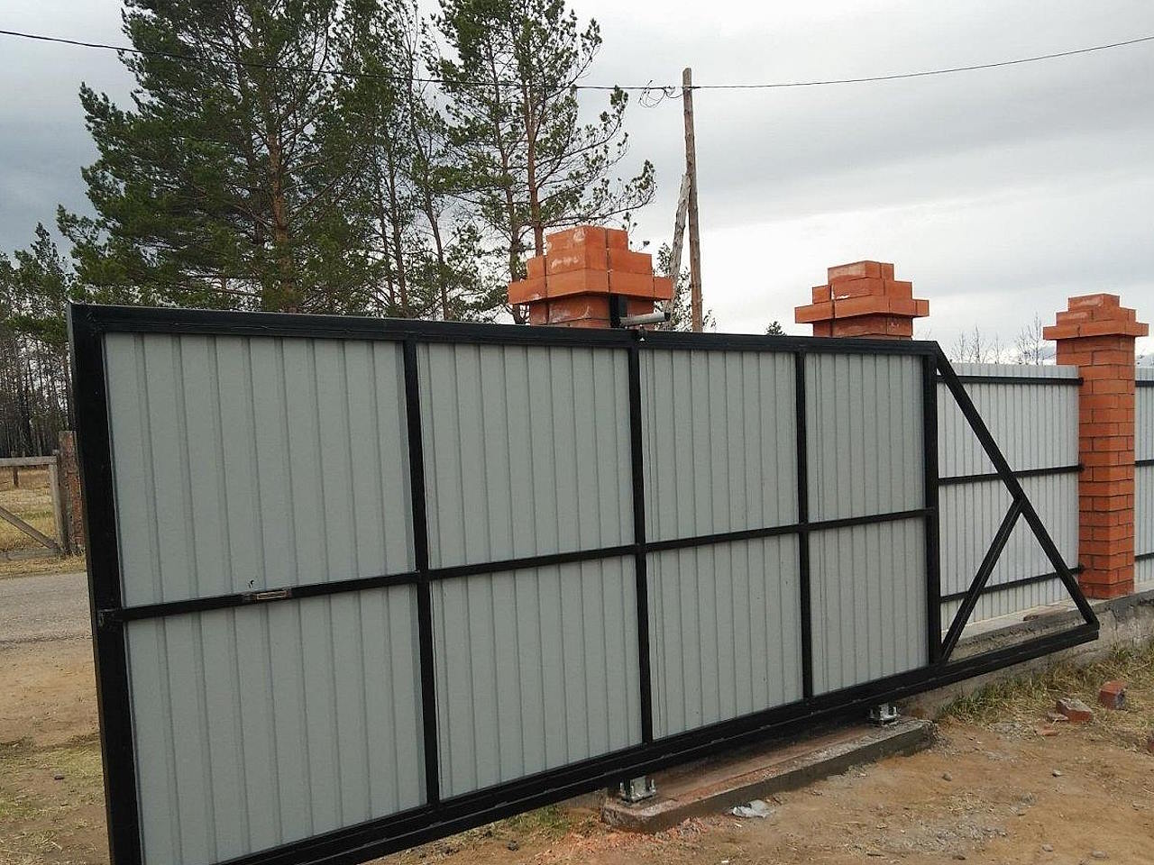Ворота распашные изготавливаются на жёстком каркасе из металлического профиля 60 на 40 с возможностью подключения автоматики для управления дистанционно через пульт. Обычно хватает ширины для въезда от 3 до 4 метра.